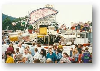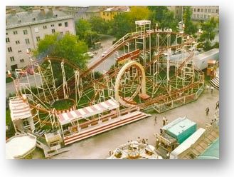 1985 : Achterbahn "Looping Star" . Damals war es die einzige transportable Looping Achterbahn Österreichs. Der Aufwand war enorm, unter anderem waren allein 8 Anhänger für den Transport notwendig.