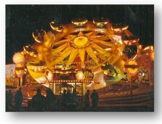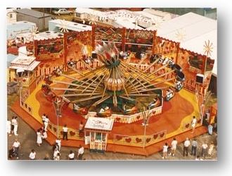1981 "Fliegender Teppich". Eines der schönsten Fahrgeschäfte der Spaß für Groß und Klein garantierte. Der Zierer Teppich sorgte überall für Furore. |