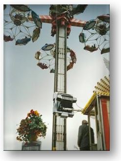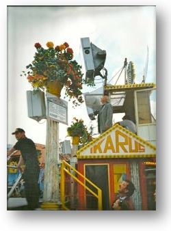 1996 Der "Ikarus" war eines der aufwendigsten Geschäfte. Für die Auf- und Abbauarbeiten musste eigens ein 120 Tonnen Spezialkran angefordert werden um die extreme Höhe von 35 Metern erreichen zu können. Für den Transport waren 5 Tieflader und zwei weitere Wägen notwendig.