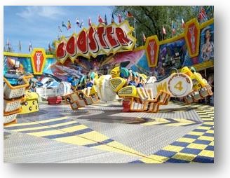 1998 folgte die bis heute letzte HUSS-Neuheit für die Reise, der "Booster". Booster bedeutet der Antreiber oder auch Verstärker. Hier ist der Name Programm. Alle die den totalen Adrenalinkick suchen sind beim Booster an der richtigen Adresse. Ein einmaliges Erlebnis für alle die Action lieben. Seine Aufmachung verspricht ein außerirdisches Fahrerlebnis und dies wird auch eingehalten! Trotz der Stärke schwärmen die Besucher immer wieder vom angenehmen Fahrerlebnis. Action garantiert! 2012 hat uns der Booster Richtung Deutschland verlassen.
